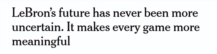 曾几何时,看詹姆斯打球是完全不同的体验:这位世界最佳球员,用无与伦比的身材、技术、力量和魅力吸引所有人的目光。你必须全神贯注,因为他不只是兑现期待——他直接超越期待。
