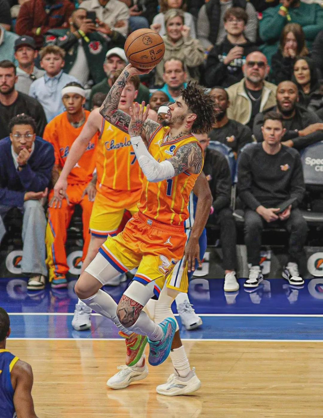咱们今天要写的并非步行者,而是黄蜂当家球星拉梅洛-鲍尔。此役三球替补出战26分48秒,24投12中,三分15中7,罚球2中2,空砍33分3板8助3抢断3失误,正负值+19全场最高。这是三球自2021年1月30日以来,首次打替补!